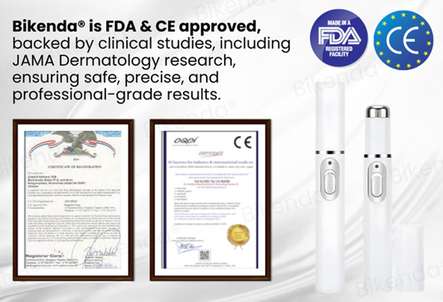 ✔️ Bezpieczne i przetestowane przez ekspertów – Bikenda®, poparta badaniami dermatologicznymi i klinicznymi , jest zatwierdzona przez FDA i CE , co gwarantuje bezpieczne, nieinwazyjne i wysoce skuteczne rozwiązanie do pielęgnacji skóry.