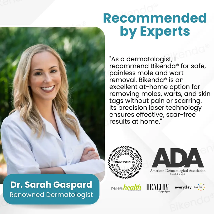 Wiodący dermatolodzy w Wielkiej Brytanii uważają Bikendę® za przełom w domowej terapii skóry. Poparte badaniami klinicznymi i czołowymi stowarzyszeniami dermatologicznymi, regularne stosowanie Bikendy® okazało się skuteczne w redukcji znamion, brodawek, ciemnych plam i skaz skórnych. Eksperci uznają Bikendę® za bezpieczną, nieinwazyjną alternatywę dla kosztownych profesjonalnych zabiegów, dzięki czemu wysokiej jakości pielęgnacja skóry jest dostępna dla wszystkich.